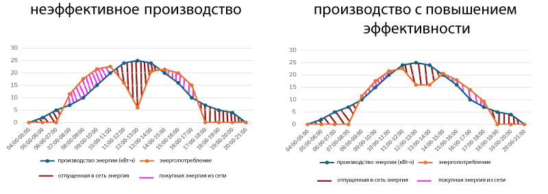 Оптимальный баланс между собственной выработанной энергией и энергией, приобретаемой из сети.